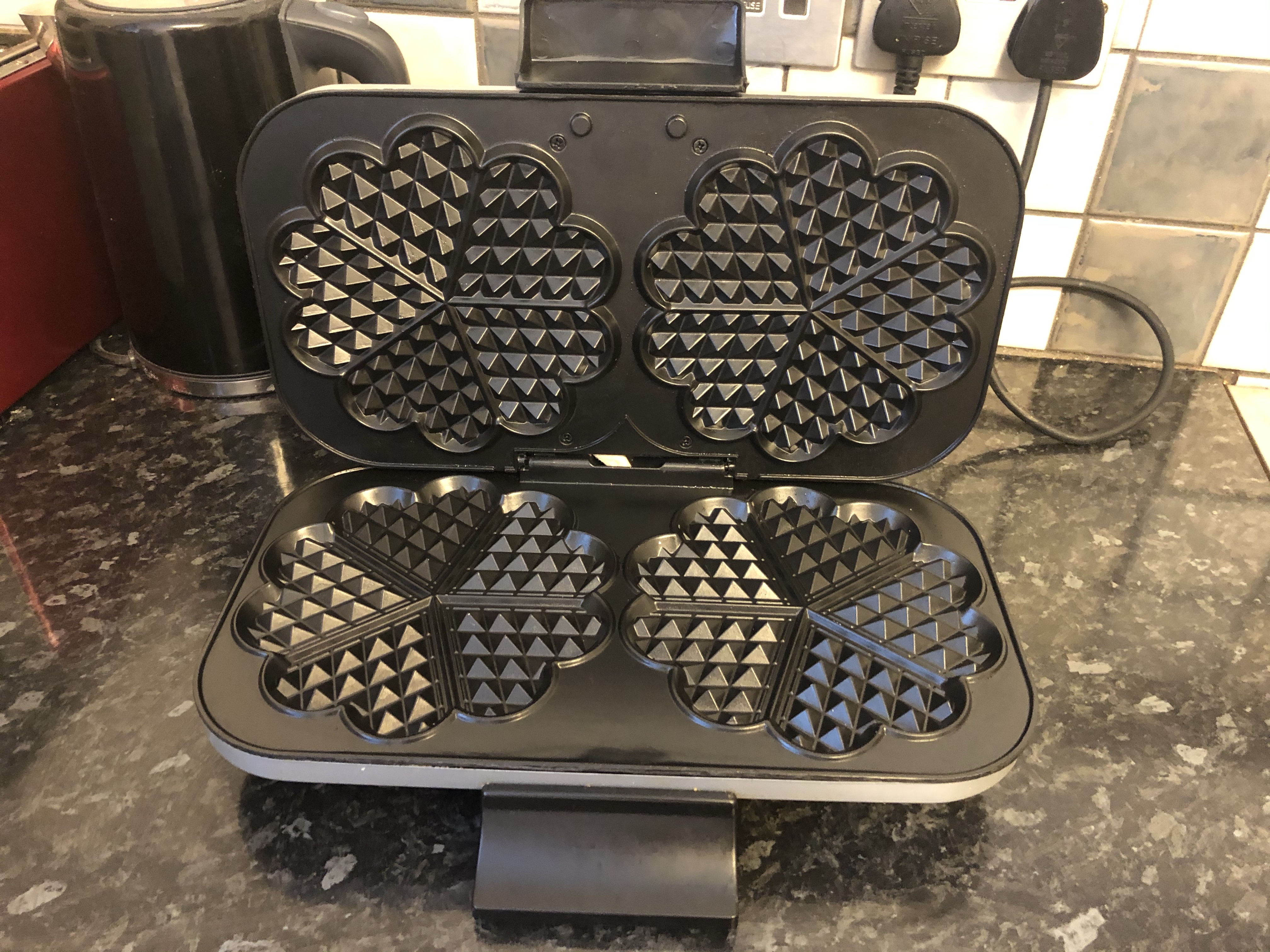 Once the lid is down, it will steam, when it’s finished steaming it still needs a couple of minutes to go crispy on the outside. Boil the kettle, make a coffee, get some berries, peanut butter, agave syrup, bananas, whatever else you want on your waffles… chocolate spread?!