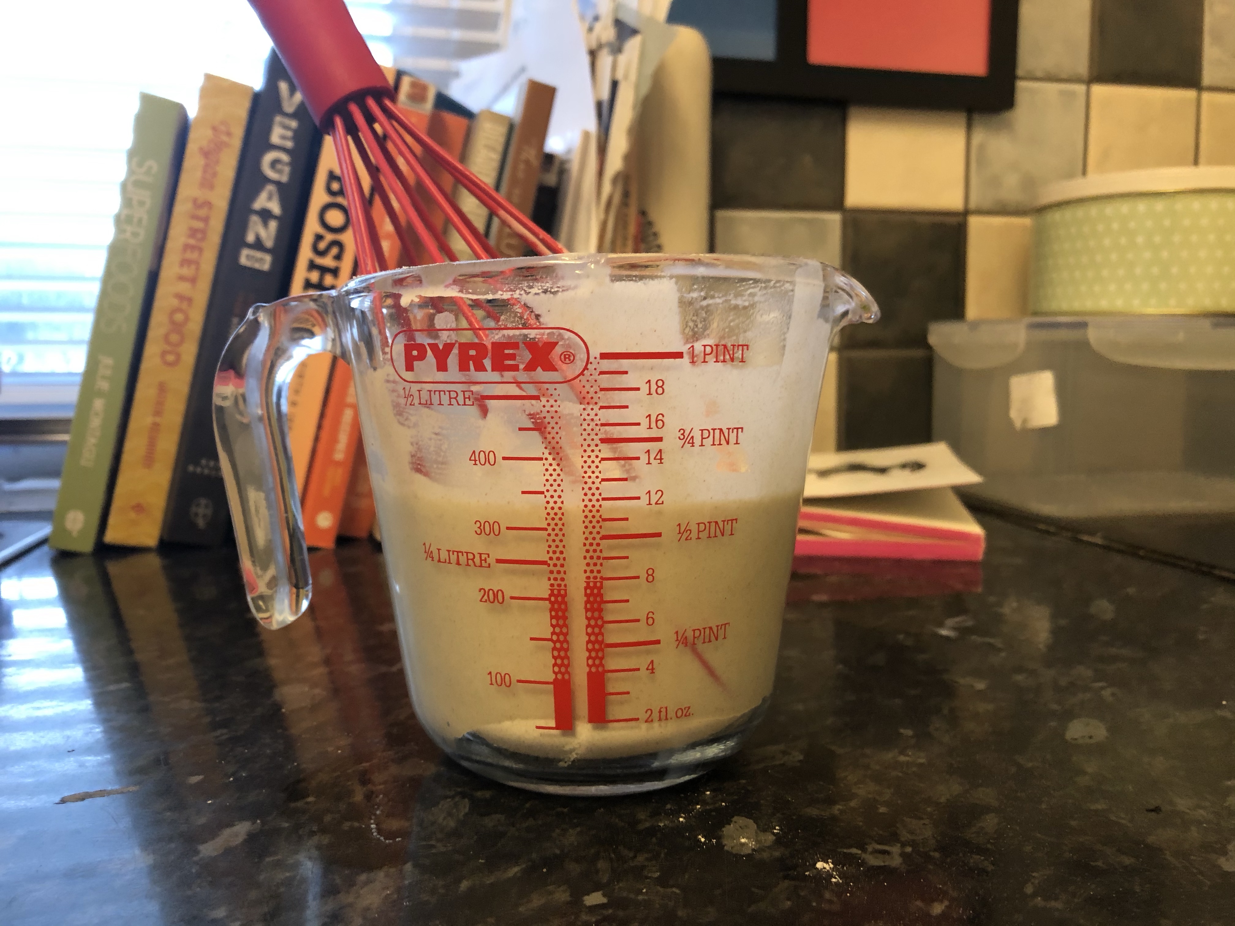 Told you it was easy, flick your waffle iron on to medium-high and let it warm up. This gives your mixture a chance to stand and get a bit gloopier as the gluten-free flour absorbs some of the plant milk.